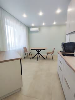 Достаточно просторная кухня, полностью оборудована мебелью и бытовой техникой.